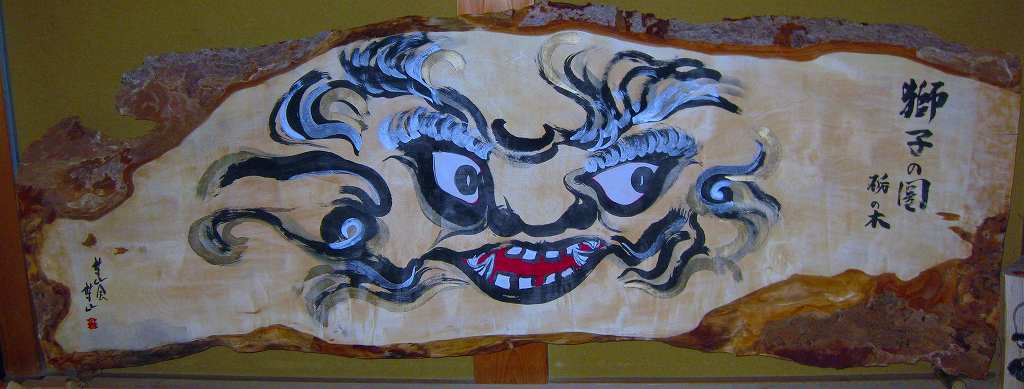 栃の木の廃材への作品です。木目の文様を眺めそこからイメージして出来た作品です。かなりの大きさ幅は1.5メートルはある。